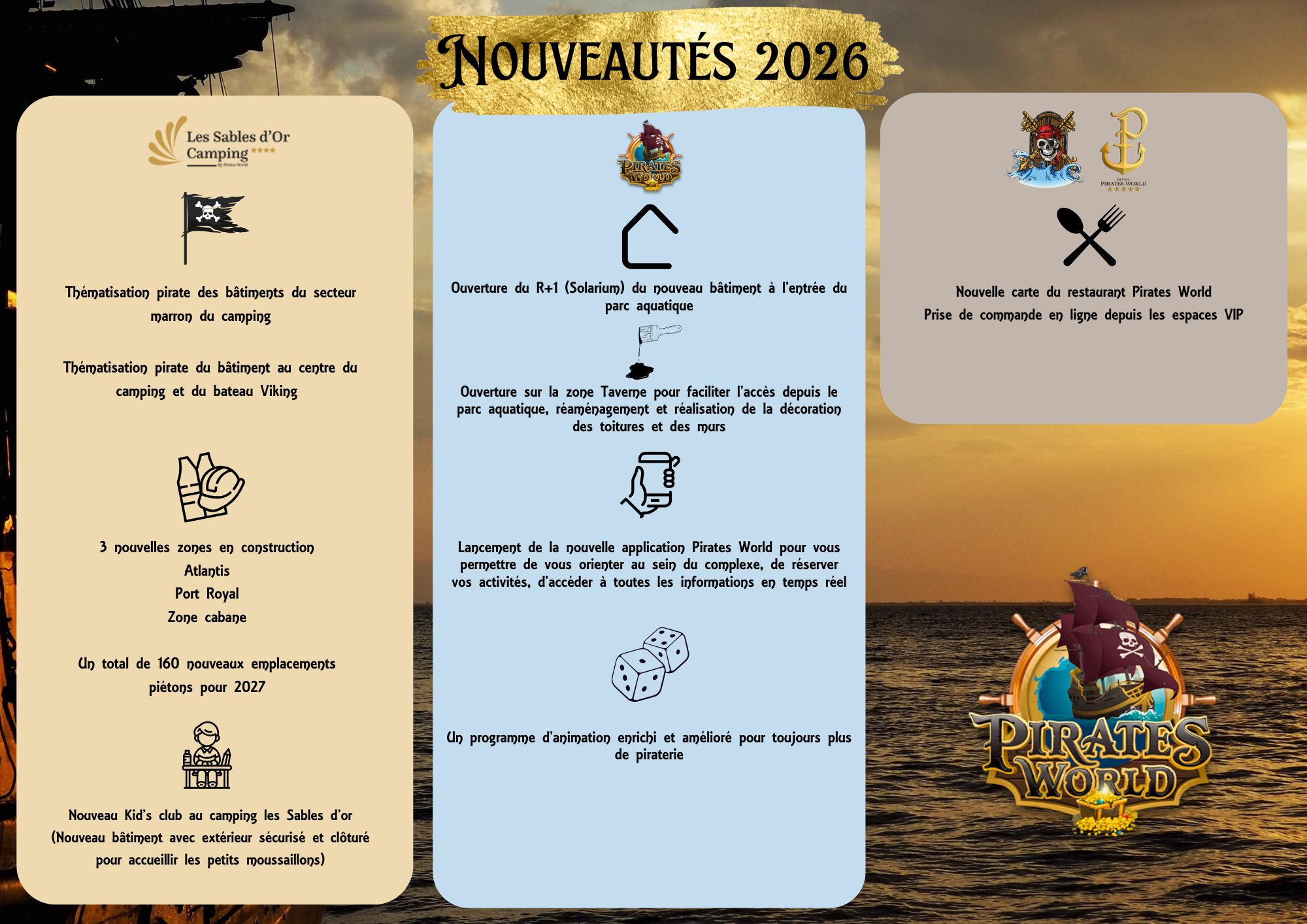 Pour vous reposer et être en forme pendant cette expédition vous pourrez loger dans nos établissements thématisés pirates : Hôtel Pirates World, Hôtel Cap Pirate ****, Camping les Sables d’Or****.